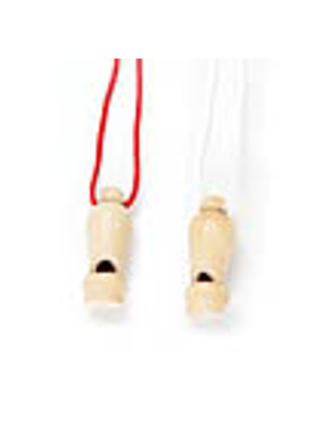 Un xiulet que inclou cinta per subjectar al coll de manera que puguin jugar i no els caigui.