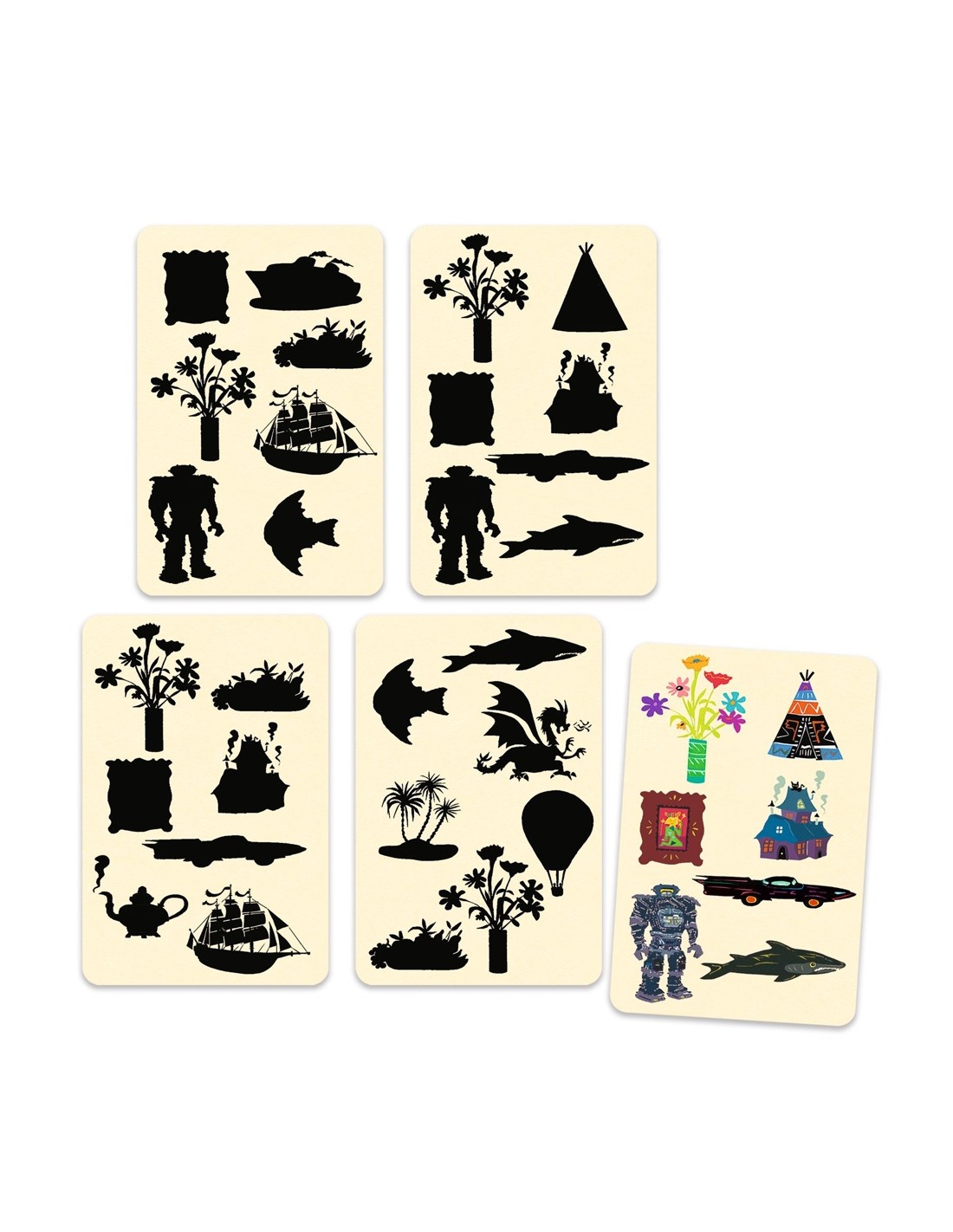 El juego incluye 36 cartas, cada una con ilustraciones encantadoras y siluetas intrigantes. Los participantes se sumergirán en un mundo visualmente estimulante mientras compiten por ser los primeros en descubrir las conexiones entre las cartas. La diversidad de imágenes y formas agrega un elemento sorpresa, haciendo que cada partida sea única y emocionante.
