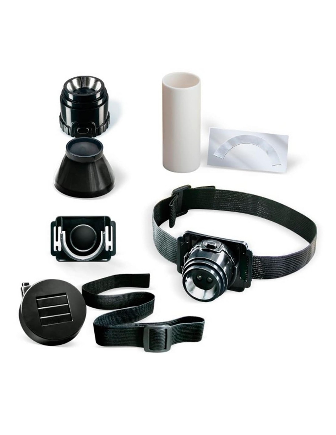 Spy Science Misión Nocturna de 4M es un juego de iluminación multifuncional diseñado para que los niños y niñas a partir de 5 años descubran cómo funciona la luz mientras desarrollan habilidades STEM de manera divertida, creativa y totalmente práctica. Este kit permite construir hasta cinco dispositivos diferentes: una linterna frontal, una antorcha portátil, una lámpara de mesa, una linterna de camping y una luz de seguridad. Cada proyecto invita a los pequeños a experimentar, observar y comprender principios básicos de electrónica y óptica a través del juego.