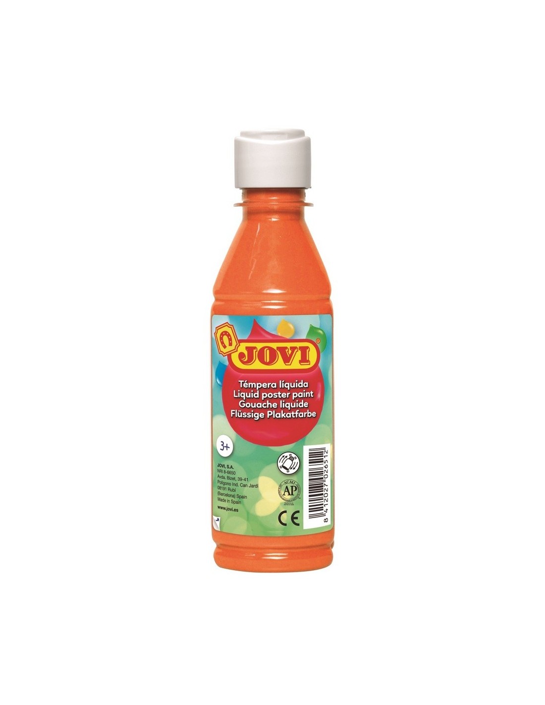 ¡No os perdáis esta fantástica témpera líquida de color naranja de 250 ml de Jovi! Si queréis más colores, podréis encontrarlos en Juguetes relacionados, un poquito más abajo.