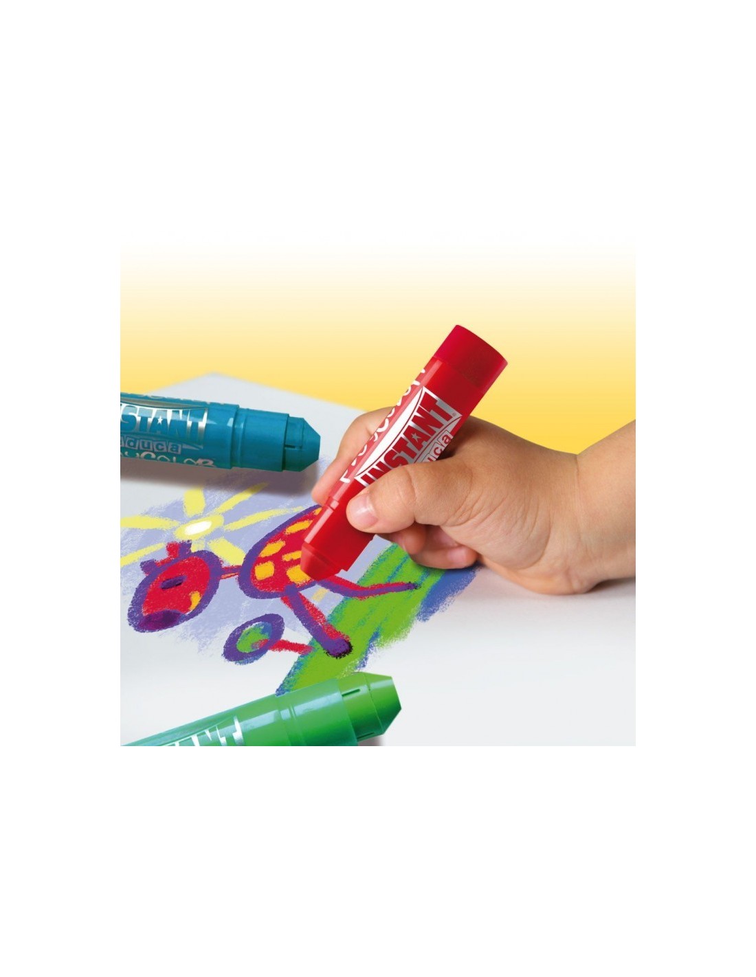 Caja con 6 barritas de témpera sólida de la marca Instant de 10 gramos por unidad. 6 colores surtidos ideales para dibujar o pintar en cartulina, papel, madera, cartón y un largo etcétera. No manchan por lo que son perfectas uso escolar. No necesita barniz. Secado rápido.