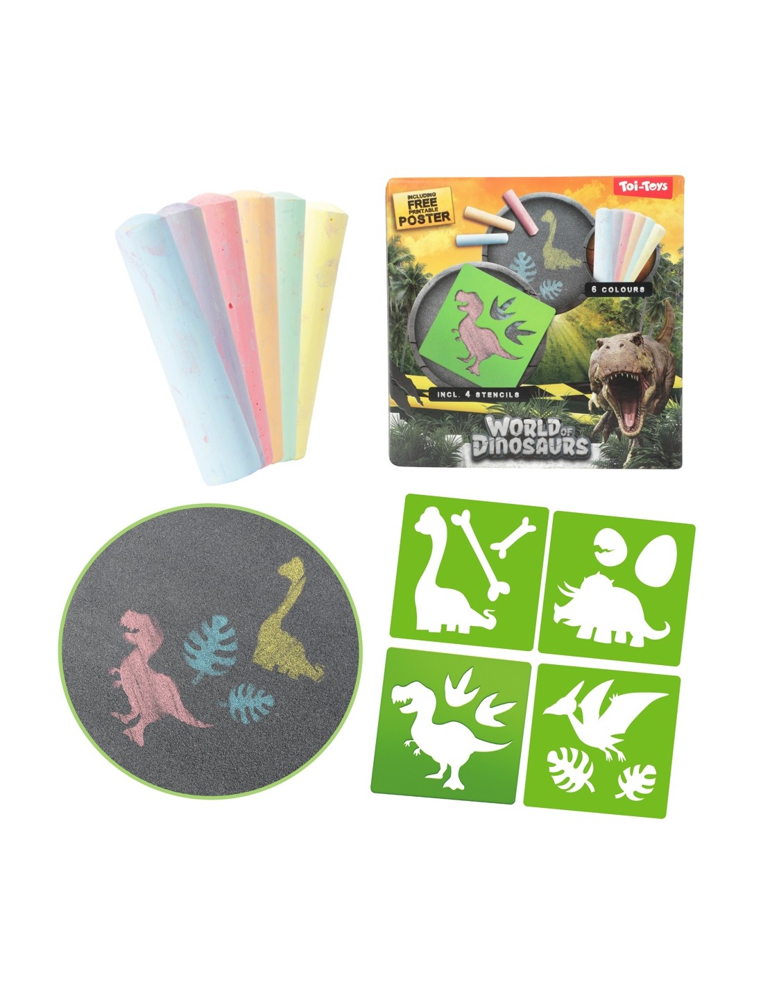 ¡Consigue nuestro juego de Tizas y Plantillas de Dinosaurios ahora y disfruta de horas de diversión creativa al aire libre! Deja que los niños se conviertan en artistas prehistóricos y transformen el mundo exterior en un emocionante escenario lleno de dinosaurios y color.