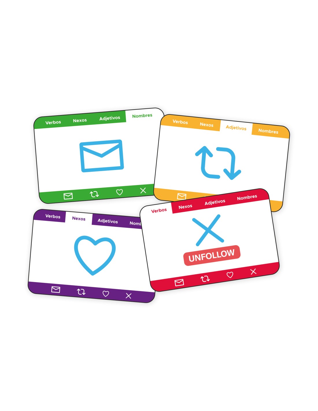 Te presentamos Unfollow, el juego de cartas más divertido y actual, donde las redes sociales se convierten en un reto de ingenio, rapidez y memoria. Prepárate para seguir el hilo… ¡sin perderlo por el camino!