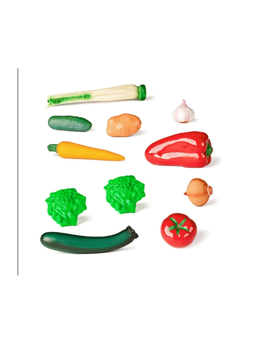 11 piezas de las verduras más conocidas, hechas de plástico y perfectas para combinar con tu cocinita, tu supermercado, tu restaurante... Su diseño es muy real y se acerca mucho a las verduras de verdad. ¡Seguro que te gustan!
