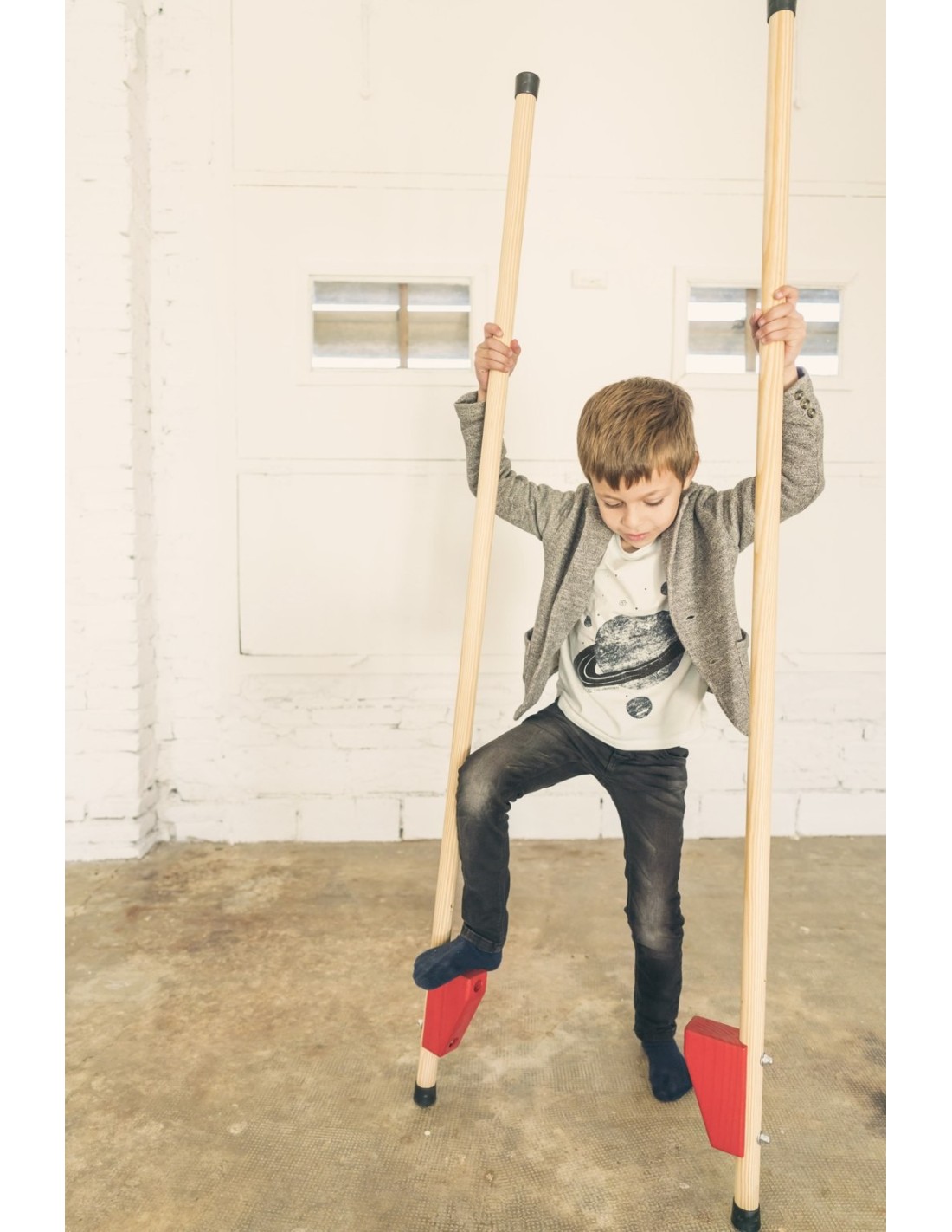 Casa Mora-Viraf nos sorprende con estos zancos infantiles para los peques de la casa, hechos de madera de pino. Con unas medidas de 150 centímetros de largo y 3 centímetros de diámetro, cuentan con unos escalones regulables en los que colocar los pies. Un clásico juego de habilidad que favorece el desarrollo psicomotor, la motricidad y el equilibrio.