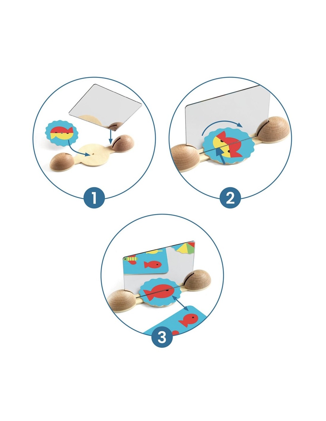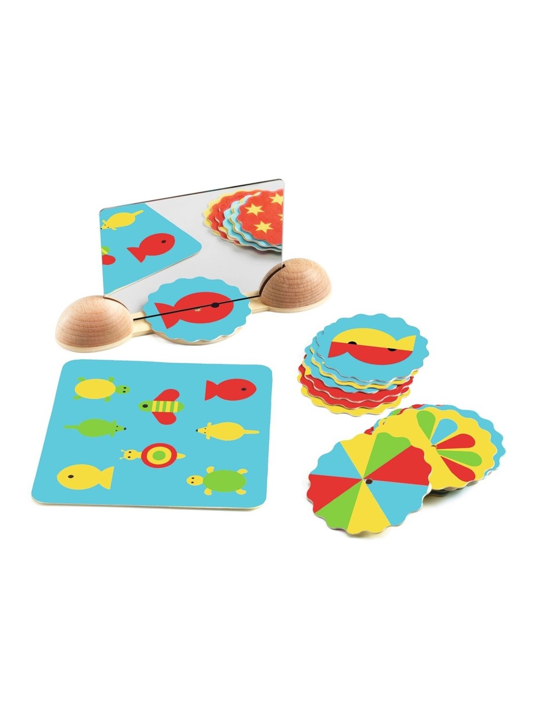 Ze Mirror Images es un juego original creado por Djeco. Divertido y educativo, enseña a los peques a jugar con la reflexión. El peque coloca la imagen debajo del espejo y la gira hasta que encuentra una de las imágenes de las tarjetas. ¡Todo se transforma y las imágenes aparecen como por arte de magia!